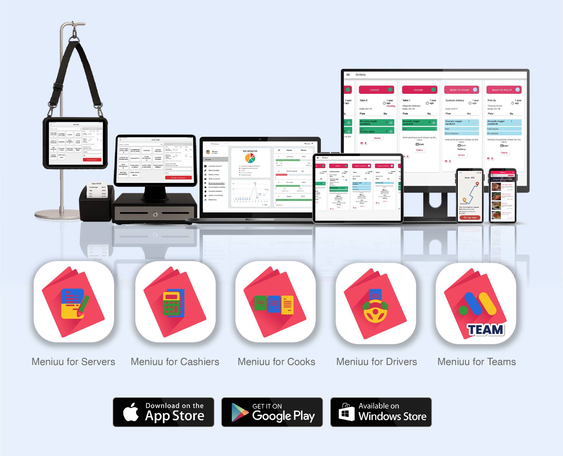 With Meniuu's Suite of Tools, your team can work together smoothly — servers, cooks, cashiers, bussers, hosts, delivery drivers, managers, owners and even customers — all in a truly collaborative workflow.